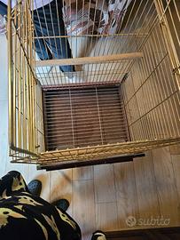 Bellissima gabbia per pappagalli e uccellini, color oro con base bordeaux, misure 130cmx50