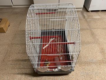 Vendo gabbia da inteno per piccoli uccelli, come cocorite e pappagallini, completa di 4 mangiatoie, dondolo, gioco a pendolo in paglia, abbeveratoio e spazzola per pulizia.