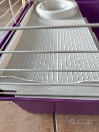 Vendo gabbia completa, usata per conigli o altri piccoli animali , con l’aggiunta di una lettiera che si può usare all’interno o all’esterno della gabbia H 42 L 50 x 78 Nelle ultime tre foto i segni di usura da parte della coniglietta