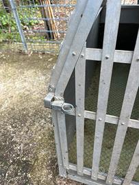 Vendo gabbia artigianale per trasporto cani, realizzata su misura per Volvo XC70, ma adattabile anche a pick-up o auto più grandi ✔ Struttura solida e robusta ✔ Divisorio centrale removibile ✔ Spazio comodo per 2 cani ✔ Ottima aerazione ✔ Ideale per viaggi, caccia o attività cinofile La gabbia è stabile e sicura, permette di trasportare due cani separati oppure di rimuovere il divisorio per creare un unico spazio più ampio. Misura: cm. 113x 102 di base, cm. 72 H