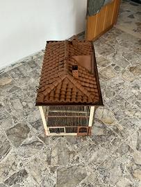gabbia per uccelli anni 50, raffigurante il palazzo del comune di Ceva , fatta a mano , da ritirare a Ceva Cn