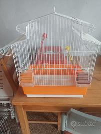 Gabby uccelli pagoda bianco e rossa contiene ciotola, tray , perches. Materiale steinless , leggero usato tenuto bene