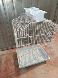 Voliera per pappagalli comprata nuova e usata meno di due settimane, completa di contenitori per cibo e due trespoli. Possibilità di spedizione in quanto la gabbia si smonta e si ripiega facilmente.