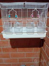 gabbia per uccelli mai usata con accessori 4 mangiatoi 2 posatori 2 altalene aperture laterali per nido e vaschetta per bagnetto con griglia separé.