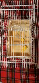 Vendo gabbia per uccelli con mangiatoia, le misure sono: L 44, P 24, H 50. Tenuta bene.