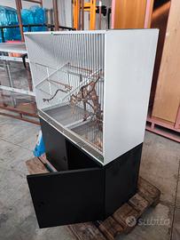 BELLISSIMA GABBIA PER UCCELLI O RETTILI, IN METALLO FINITURA VERNICIATO BIANCO, CROMO E ACCIAIO.