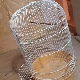 Vendo bellissima gabbia in metallo per uccelli di colore bianco. misure diametro 40, h 70.