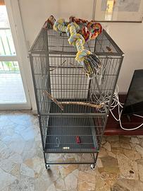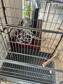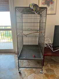 vendo gabbia spaziosa per uccelli di piccola e media taglia. materiale metallo molto resistente dotata di due porte anteriori con chiusura a scorrimento, vassoio estraibile con griglia e ruote dimensioni: 79 x 51,8 x 132 cm