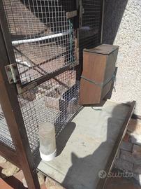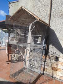 Voliere artigianali legno e ferro. Perfette per canarini, diamantini e cocorite . La grande misura 200 x 105 x 60 ( solo la gabbia 120 x 105 x 60). La piccola 175 x 63 x 63( divisa in due ma il divisorio è facilmente rimovibile). Io usavo la grande come allevamento e la piccola come nursery. Vendo insieme o separatamente. Il prezzo è per tutte e due.