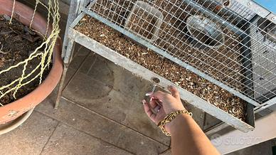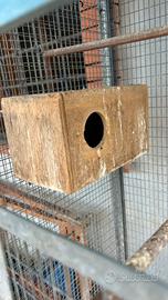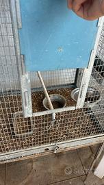 gabbia per uccelli dotata di aperture da sotto e da davanti. incluse ciotole per mangime e nido. prima della spedizione verrà pulito tutto.