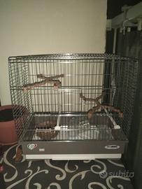 Due mangiatoie è rametti in diagonale per mettere all'uccellino di muoversi...per info scrivetemi in privato
