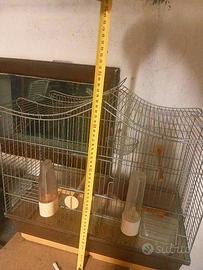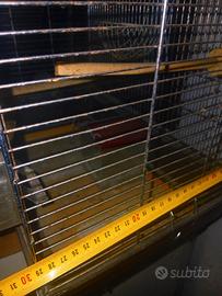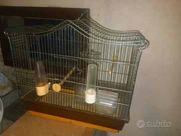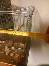 Gabbia per uccellini completa di accessori – 50x30x55 cm Vendesi gabbia per uccellini (ideale per canarini, cocorite o piccoli esotici) in buone condizioni generali. La gabbia presenta una caratteristica forma del tetto "a onda" che offre maggiore spazio verticale. Dettagli e Accessori inclusi: Dimensioni: circa 50 cm (L) x 30 cm (P) x 55 cm (H). Accessori: 2 beverini/mangiatoie a colonna, 1 mangiatoia esterna, posatoi e altalena/nido a cesto interna. Manutenzione: Fondo in plastica con cassetto estraibile per una pulizia rapida e facilitata. Stato: Struttura solida e integra.