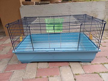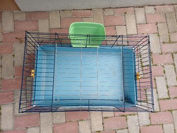 Gabbia ideale per cavie, porcellini e coniglietti. Struttura in rete metallica, porta d'ingresso sia sul davanti che dall'alto, Fondo in plastica lavabile e portafieno in plastica. Integra e in buone condizioni. Dimensioni 80x50xH 42 cm