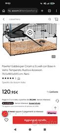 Vendo PawHut Gabbia per Roditori a 3 Livelli con Base in Vetro Temperato e Ripiani, 76.5x48.5x54.5 cm, Nero.
