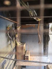 Gabbia legno 180x150x60piu gabbia ferro130x60 piu 7 parrocchetti