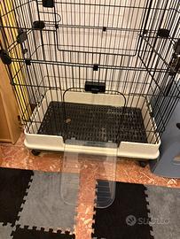 Vendo come da titolo gabbia per roditori grandi! Io la usavo per cincilla! Misure e accessori come da ultima foto in piu aggiungo casetta grande in legno,2 ciotoline,portafieno in plastica, pallina porta fieno da appendere all interno, un altalena di legno ,una piccola mensolina sempre in legno e una lettiera di plastica per sabbietta cincilla o pellet! Acquistata a gennaio quindi praticamente nuova! Solo interessanti!