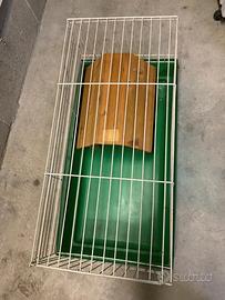 Gabbia per conigli, criceti, porcellini d'india e altro Spaziosa, facile da pulire, e ha una base di plastica, apertura superiore in metallo. In aggiunta casetta di legno per rifugiarsi e dormire ecc... leggermente rosicchiata.