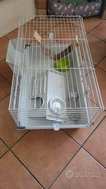 Vendo gabbia roditori perfettamente funzionante con dispenser acqua, ciotola cibo, rialzo, contenitore fieno Mancante di pezzetto plastica in angolo che non compromette nulla.