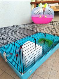 Gabbia per roditori in buone condizioni,con cuccia in plastica,beverino,porta fieno,trasportino,un taglia unghiette e forbicine per il pelo☺️misure cm 50x 92 x 45 h