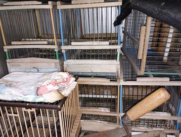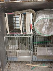 Vendo solo in blocco circa 15 gabbiette con fondo alto, 4 gabbiette in acciaio, un trasportino come in foto, e mobiletti antirapace come in foto, contatti via email, non spedisco, solo ritiro a mano.