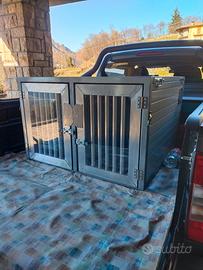 Cedo trasporto cani in ottime condizioni, usato poco, in pannello coibentato, struttura in zincato, Fondo e sportelli in alluminio, pannelli legno per rialzare i cani, copri sportelli in plaxiglas per freddo. Non spedisco, prezzo non trattabile.
