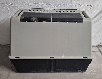 Gabbia per trasporto cani o altri animali fino a 25 kg. Misure: 82x50x61 cm. C'è una crepa sul tetto a sinistra, ma non compromette la funzionalità. Prezzo non trattabile.