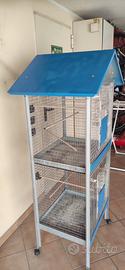 Vendo gabbia in ottime condizioni, fondi nuovi, divisa a due piani e unificabile. Misure 60x50x170 completa di accessori per uccelli. Smontabile in 4 pannelli.