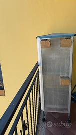 Gabbia per uccelli usata possibilita di dividerla verticalmente . Perfetta anche per l inverno in quanto ho creato la possibilità di riparare gli animali dal vento e dal freddo. 65x150