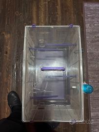 disponibile per pochi giorni . vendo gabbia per uccellini con una crepa nella parte tonda ( come da foto) misura altezza cm 50 larghezza cm 30 lunghezza cm 50 con accessori per mangime per bere e asticelle più altalena