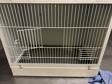 Gabbia con laterali in lamiera, cassetto in acciaio estraibile, tutto in perfetto stato. No accessori solo con posatoi. Misure altezza 40cm x larghezza 49cm profondità 37cm