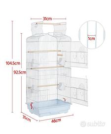 Gabbia Voliera per Uccelli Pappagalli Inseparabili Parrocchetti in Metallo e Posatoi in Legno 46 x 36 x 92 cm Bianca