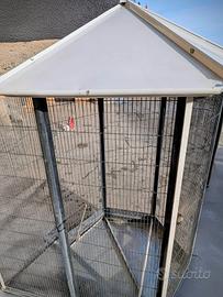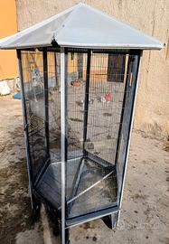 Vendo voliera spaziosa con più aperture, bastoncini interni e doppio fondo estraibile per pulizie rapide. Completa di accessori, ideale per volatili.