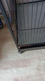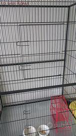 Vendo ampia voliera per uccelli o roditori. È stata utilizzata per un degu. Adatta anche a ratti e cincillà. NO spedizione,Solo consegna a mano. Tutta in metallo. Alta 143 * larghezza 62 * lunghezza 92. È vuota, si possono applicare ripiani. Ha ruote con i blocchi. Comprese fornisco ruota in metallo e due ciotole in ceramica. Le ho dato una prima pulita. Ha alcune parti in cui la vernice è venuta via, da coprire che fa un po' ruggine,anche un po' sulla copertura ruote. Due aperture davanti ampie. Venduta come in foto. In buone condizioni generali, anche gli accessori sono usati e con qualche segno di usura, la ruota funziona, fa un po' rumore, sarebbe da bloccare. Ho aggiunto lastra metallo al fondo fatta fare su misura x aumentare superficie calpestabile (anch'essa ha segni di usura). Si può eventualmente sfilare dall'alto senza smontare tutto. E sotto ha griglia e cassetto x raccogliere residui. SOLO ritiro a mano montata, Ciriè (Torino). NO spedizione. Date le dimensioni serve un mezzo di trasporto idoneo. Pagata 200 euro. vendo a 60.