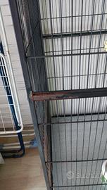 Vendo ampia voliera per uccelli o roditori. È stata utilizzata per un degu. Adatta anche a ratti e cincillà. NO spedizione,Solo consegna a mano. Tutta in metallo. Alta 143 * larghezza 62 * lunghezza 92. È vuota, si possono applicare ripiani. Ha ruote con i blocchi. Comprese fornisco ruota in metallo e due ciotole in ceramica. Le ho dato una prima pulita. Ha alcune parti in cui la vernice è venuta via, da coprire che fa un po' ruggine,anche un po' sulla copertura ruote. Due aperture davanti ampie. Venduta come in foto. In buone condizioni generali, anche gli accessori sono usati e con qualche segno di usura, la ruota funziona, fa un po' rumore, sarebbe da bloccare. Ho aggiunto lastra metallo al fondo fatta fare su misura x aumentare superficie calpestabile (anch'essa ha segni di usura). Si può eventualmente sfilare dall'alto senza smontare tutto. E sotto ha griglia e cassetto x raccogliere residui. SOLO ritiro a mano montata, Ciriè (Torino). NO spedizione. Date le dimensioni serve un mezzo di trasporto idoneo. Pagata 200 euro. vendo a 60.