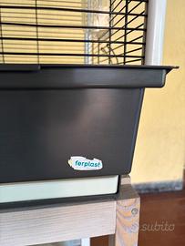 Gabbia/voliera di medie dimensioni (L 83 P 45 H 70) della Ferplast, in ottime condizioni, che può ospitare almeno 6 canarini o cocorite; dotata sia di tutti gli accessori a corredo (mangiatore girevoli , beverinI , pinze per verdura, posatoi e altalena gioco) che di altri acquistati successivamente come specchietto con campanello, posatoi particolari, giocattoli, nido, etc.