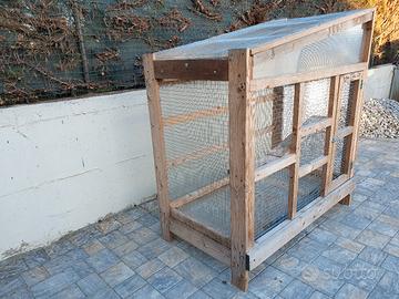 Vendo Voliera Gabbia in Legno interamente costruita a mano, perfettamente integra e in ottime condizioni, compreso di posatoi e con una porta sola messa frontalmente a destra della Gabbia, Vedi Foto.