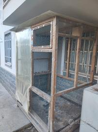 vendo gabbia per animali,sempre tenuta al coperto ma con il tetto per esterno,con fondo estraibile per la pulizia ,con due ampie portone,adatta a conigli galline pappagalli ecc