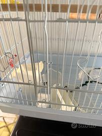 BAKAJI Gabbia Voliera per Uccelli con Vassoio Scorrevole e Posatoi in Legno, Gabbietta in Metallo Impilabile, Ideale per Pappagalli, Parrocchetti, Volatili, 46.5 x 35.5 x 65.5 cm (Bianco) Utilizzata per un anno con un solo pappagallino,come nuova.
