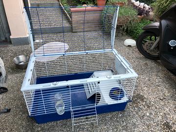 Gabbia per coniglietti o roditori marca FERPLAST da cm.96x57x h.57 Con tetto apribile, sportellino, e completa di accessori come da foto OTTIMO STATO PRATICAMENTE NUOVA