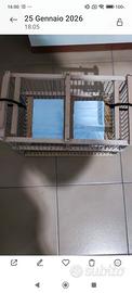 Gabbia trappola da voliera con sistema a molla per catturare gli uccelli dentro una voliera , con questo sistema quando l'uccellino si posa sopra il bastoncino all'interno cade giù e lo sportellino si chiude a molla e cattura l'animale,ottimo sistema infallibile apertura frontale e superiore. sbarre in metalloGabbia made in italia Artigianale introvabile!!!!