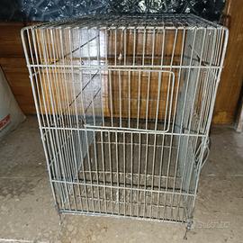 La gabbia è sprovvista di base in plastica, ma ha il fondo chiuso da una retina e sopraelevato.
