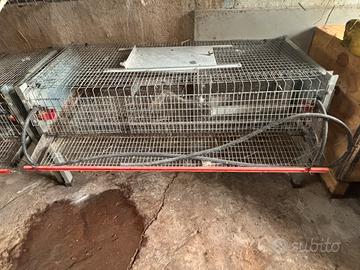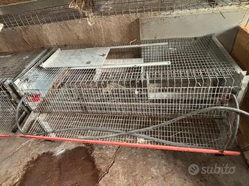 Gabbie per quaglie, ma possono essere utilizzate anche per altri animali. Con apposita rete sottostante in pendenza per far rotolare fuori le uova