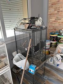 Gabbia c pappagallo e x ucellini gabbie terrenziali un metro per 50 cm ogni piano.