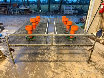 Vendo gabbie da ingrasso conigli da 14/16 posti complete di abbeveratoi e mangiatoie. Disponibili 14 gabbie con cavalletti fino a usaurimento a 50€/caduna