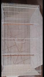 gabbie da cova bianche 64x35x35cm con doppia griglia, posatoi, mangiatoie e beverino usati poco