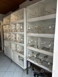 12 gabbie da 90 con carrello, un carrello ogni quattro gabbie, compresi divisori che possono far 24 gabbie da 45.
