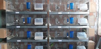 Come da titolo vendo gabbie da cova da 120 Sono 20 gabbie da 120 in ottime condizioni con mangiatoie interne e separé centrale... 5 da 90 cm anch'esse con mangiatoie interne e separé Minimo 5 gabbie prezzo 60 euro ciascuna quelle da 120 invece quelle da 90 euro 50 Inoltre ho disponibilità di nidi e bagnetti che includo nel prezzo delle gabbie