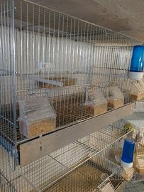 Salve vendo per cessato allevamento, n. 10 gabbie domus molinae, da 65,in acciaio inox, n. 6 da 55 zingate, n. 2 da 45 zingato. Quelli da 65 sono come nuovi, gli altri sono in buone condizioni, li do completi di accessori, mangiatoie beverini, posatoie, e separe', poi ho anche nidi per cocorite e per inseparabili.