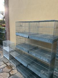 8 gabbie da 55 € 20 l’una 1 gabbia da 60 € 25 l’una 3 gabbie da 120 € 45 l’una Tutto compreso di beverini mangiatoie porta nidi interni e altri optional Se prese tutte in blocco € 300