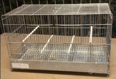 Cedo diverse gabbie da cova da 55 cm con 4 sportelli (2 frontali e 2 laterali) - 4 sportelli frontali per mangiatoia esterna, 3 gabbie più piccole, voliere di grandi dimensioni ed accessori di vario genere: posatoi da gabbia, mangiatoie esterne, mangiatoie con griglia antispreco di varie dimensioni e vari scomparti (da 4 - da 8 – da 15 scoparti), beverini di varie dimensioni, porta biscotto, porta osso di seppia, nidi per cocorite, nidi per inseparabili, nidi per canarini ed altri vari accessori. Sono quasi tutti pezzi usati ma in buone condizioni. I prezzi variano in base alla tipologia ma molto inferiori ai prezzi del nuovo. Sconti per acquisti multipli. Preferisco il contatto telefonico, Tel. 3929737307, solo se seriamente interessati. Astenersi curiosi e perditempo.